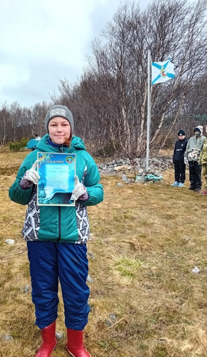Нынешней весной северян погода не радует. Для участников похода природа также не сделала исключения. Холодный ветер гнал по бухте серые волны, и участникам соревнований по гребле приходилось туго. Нос и весла лодки поднимали фонтаны солёных брызг, которые обрушивались на гребцов. Вёсла гнулись, силясь удержать судёнышко на курсе, а секундное промедление сносило лодку с маршрута, обрекая спортсменов на новые сверхусилия для возвращения на водную трассу. Тяжело дыша, будущие отважные капитаны и олимпийские чемпионы по гребле выбирались на берег, гордые тем, что им без вмешательства спасателей удалось завершить дистанцию. Среди девушек первое место по гребле заняла шестиклассница из лицея Елистратова Майя, а среди юношей - шестиклассник кадетского корпуса Одегов Максим.